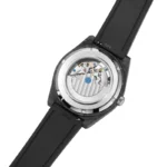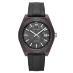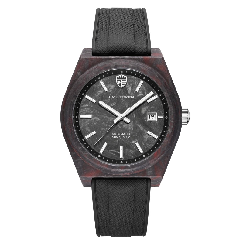 This watch is powered by the 2831 automatic movement, which offers increased magnetic resistance and stability.The forged carbon watch comes with a black rubber strap with a pin buckle with a quick-release system