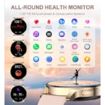 - Stylish Round Watch: Smart watch for women with ultra-thin metal frame, 1.32 ” TFT LCD full touch screen, 360*360 HD resolutiont, better color saturation, the picture quality is more delicate and clear, brings an outstanding and more comfortable viewing experience.
